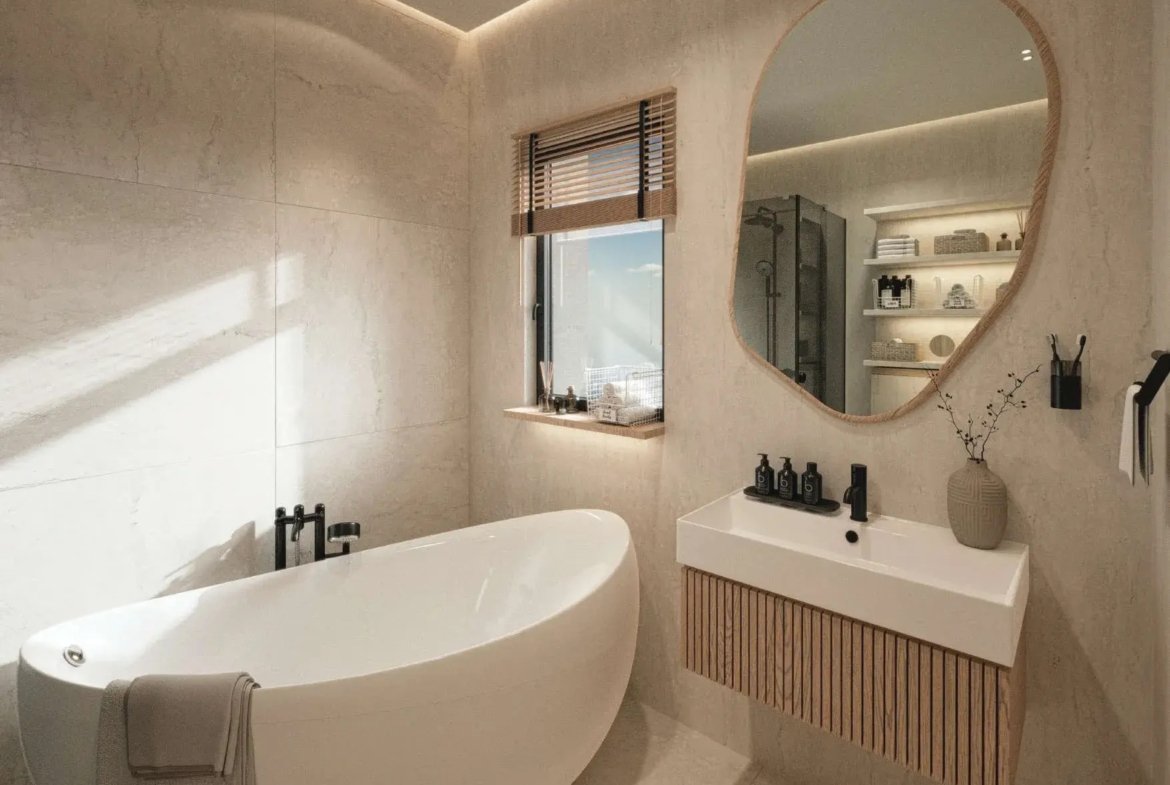 The development offers an elevated lifestyle defined by clarity, openness, and harmonious proportions. Natural light fills the interiors, while the design philosophy emphasizes clean geometry, vertical elegance, and a continuous connection to the horizon. This approach creates living spaces that feel both sophisticated and soothing, offering residents a sanctuary shaped by balance and understated luxury.