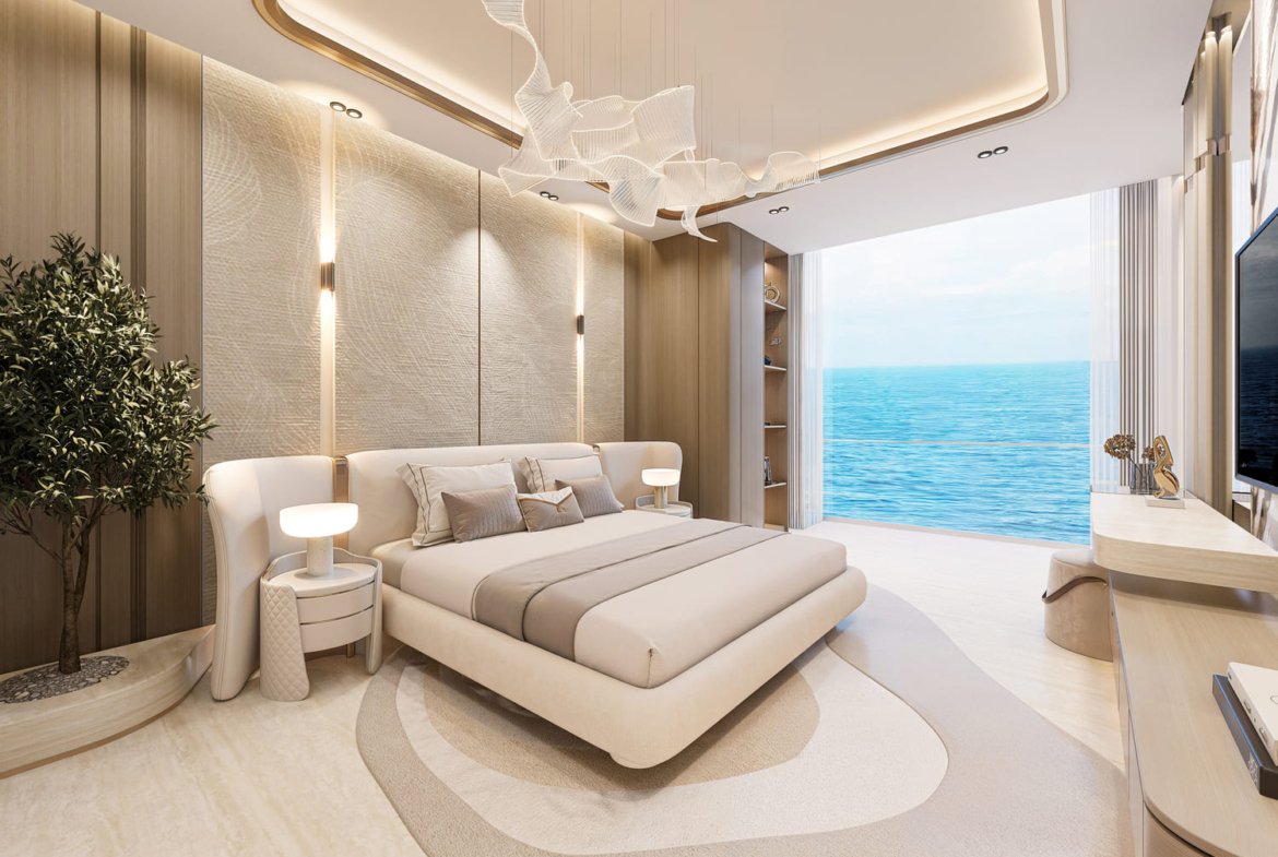 The residences are crafted with attention to detail, featuring seamless finishes, premium materials such as marble, travertine, and fluted glass, as well as refined touches like gold matte trimmings and luxury curtains. Every apartment is delivered fully furnished, offering residents a turnkey lifestyle where comfort and sophistication come together effortlessly.