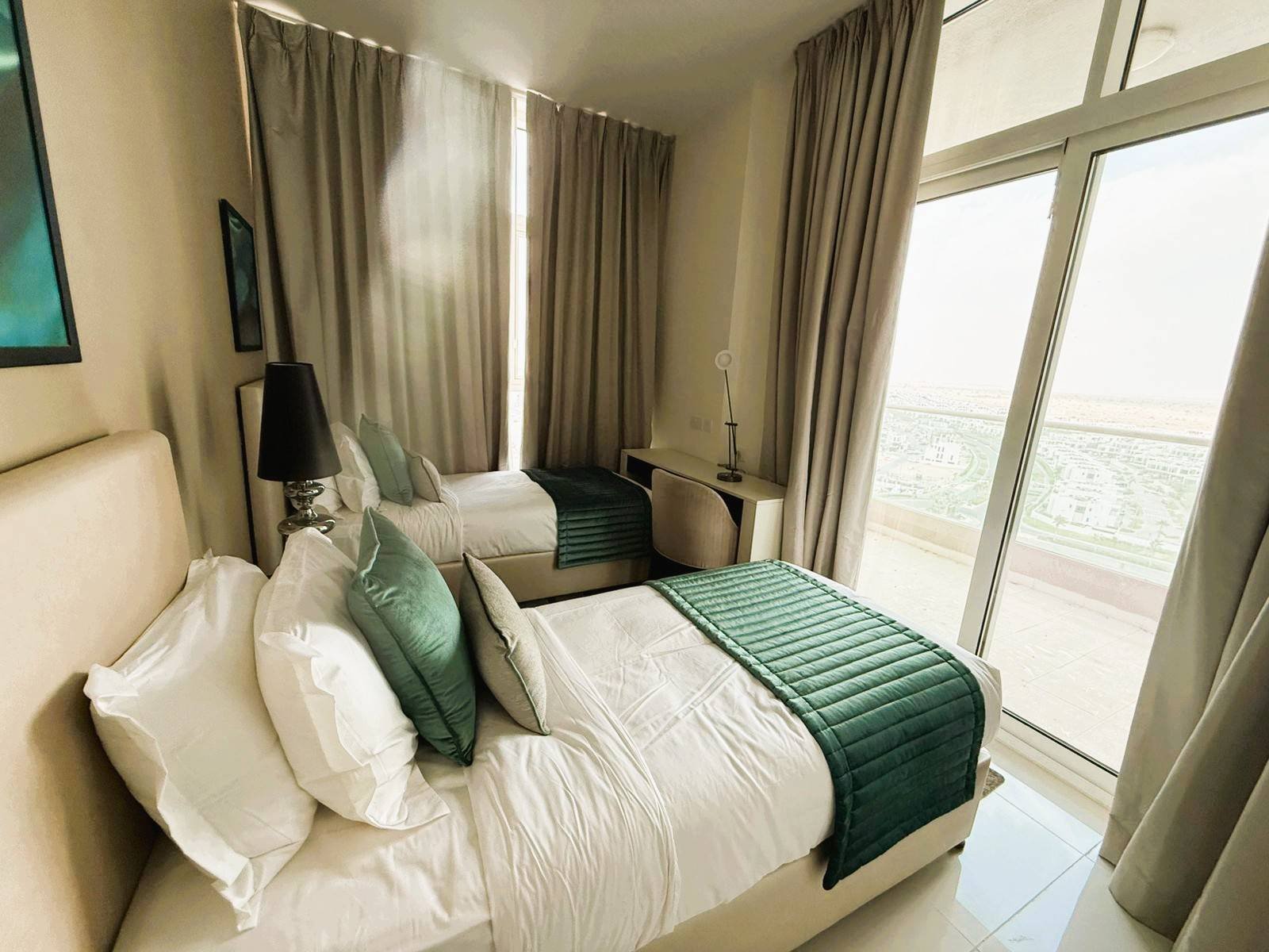 Nasama Properties is delighted to present this elegant, fully furnished 2 bedroom apartment in Viridis Tower at DAMAC Hills 2, Dubai.