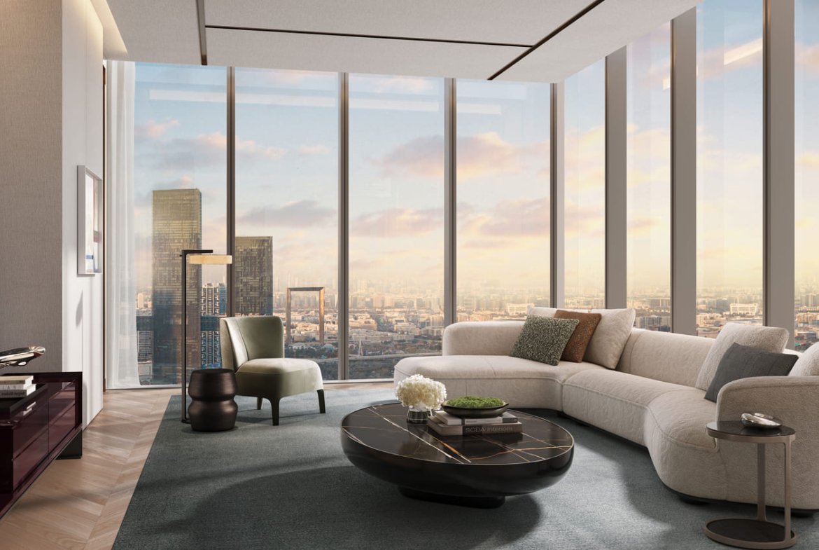 The globally famous signature architecture of this project acquires an enticing facade that balances form with sophisticated functionality. Envisioned by the SCDA, a world-renowned brand of forward-thinking architects and interior designers, this property showcases a seamless fusion of sustainable and futuristic design with elegant and bespoke interiors where harmony resides perfectly. The insides are beautifully composed with a warm ambience, where caramel accents, premium & smooth marble, and rich wooden finishes add a layer of subtle exquisiteness & exclusivity. The clear lines enhance the infrastructural flow, while the glass details introduce a sense of sun-lit layout.