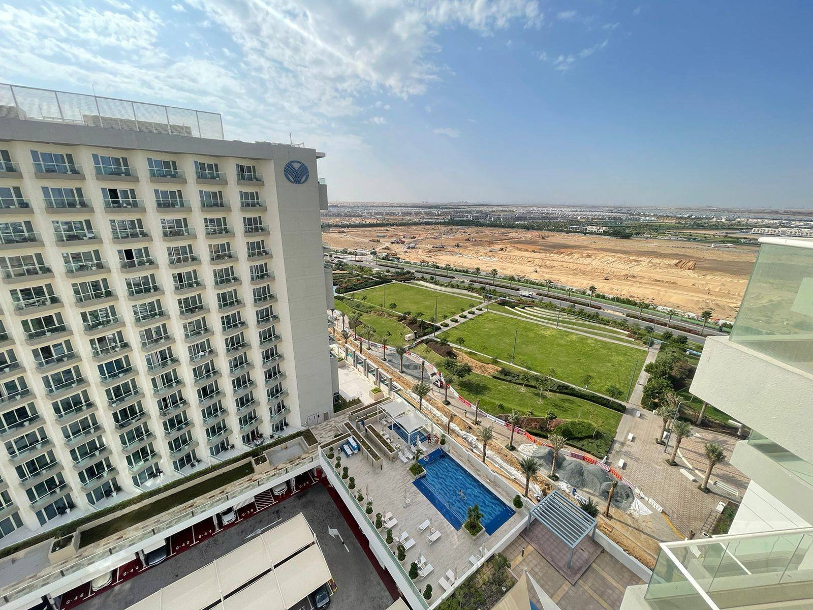 Nasama Properties is delighted to present this elegant, fully furnished studio apartment in Viridis Tower at DAMAC Hills 2, Dubai.