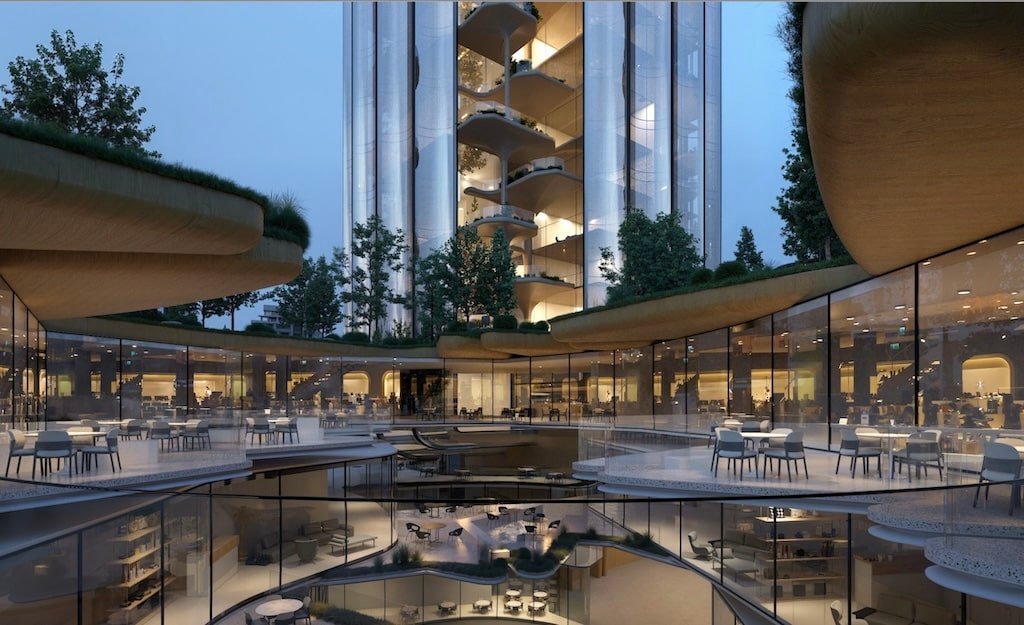 Premium lifestyle podium: dining, fitness, wellness, co-working