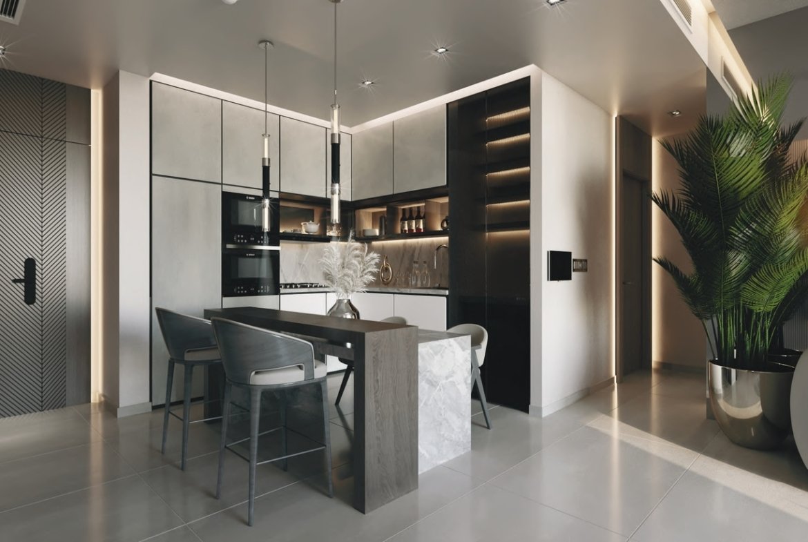 The residence includes 121 units in total, ranging from studios to one- and two-bedroom apartments. Each home is thoughtfully designed to maximize space and natural light, featuring open layouts and high-quality finishes. Kitchens and bathrooms are equipped with premium built-in solutions and elegant fittings, ensuring a blend of functionality and refined aesthetics.